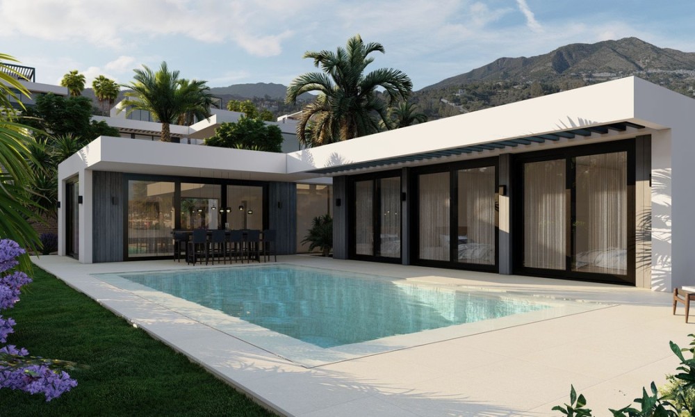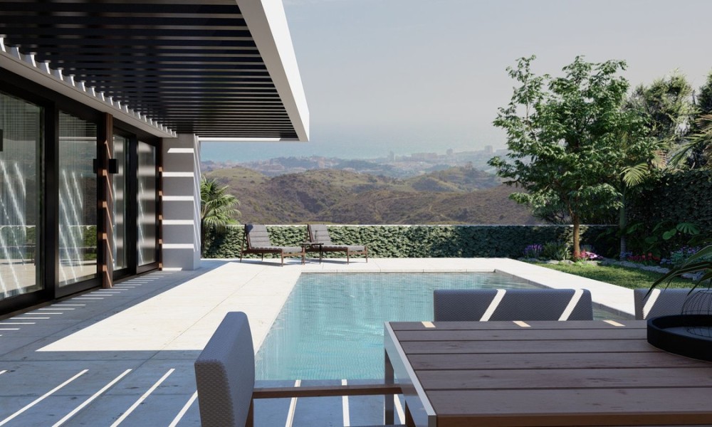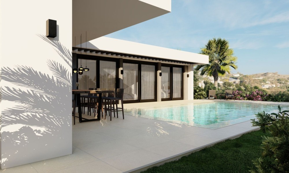 Brand new villas in the picturesque Andalusian village of Mijas Pueblo, perched 400 meters above sea level. Just a brief 15-minute drive to the airport and 20-25 minutes to Málaga and Marbella, the location offers both tranquility and convenience. The villa is an energy-saving house, boasting single-level architecture, top-tier materials, and clever spatial utilization. Available in three sizes with customizable options, each villa features four bedrooms, three and a half bathrooms, and expansive communal areas complemented by a private pool. All our villas are thoughtfully furnished and equipped with solar panels. Prices range from 995,000 EUR to 1,650,000 EUR and include, solar panels, complete interior furniture and décor package, outdoor spotlights for landscaping, access to the developer experience program.