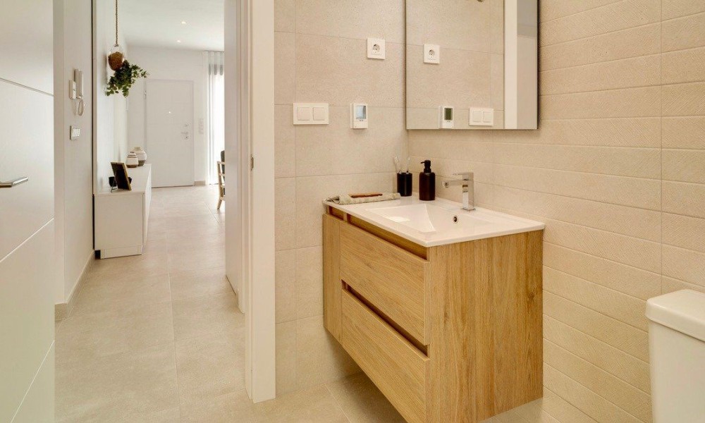 We are proudly presenting these really nice one level villas on Altaona Golf and Country Club. We would like to introduce you to this amazing project and its equally wonderful surroundings. Cheery, sunny homes designed with an outdoor lifestyle in mind. They come with either 2 or 3 bedrooms and have 2 bathrooms. Plot sizes are 300 m2. There are 4 options of layouts to choose from. Expected build time is 10-12 months, the show villa should be ready by the end of 2023/start 2024. As this developer has been in business for over 30 years, we can show other showhouses which are already built, so you can see the quality and finish. Interior photos are from other previous developments. This model shown is a 3-bedroom, 2 bathroom. They are all in one plan. All of them are South facing and they all have 18 m2 private pools. The kitchen/diner/lounge is 36 m2 and has large glass doors to the garden/pool area. All white goods in the kitchen are included. The master bedroom is 16 m2 and has a walk-in wardrobe / dressing room which leads on to the spacious en suite bathroom with underfloor heating, double sinks and walk-in shower. The two other bedrooms also are good sizes (both over 11 m2) and come with built-in wardrobes, sharing the second bathroom with underfloor heating and modern walk-in shower.