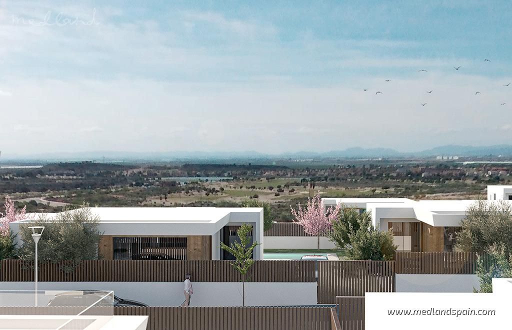 Exclusive complex of modern villas in the fantastic Altaona Golf & Country Village, which lies 15 minutes from the city of Murcia. The resort offers 24 hr security as well as a selection of daily necessities, like a supermarket, a golf proshop, and restaurants. In addition to an 18-hole golf course, there are other sports activities available, like padel and tennis courts, Spa and gym. The surrounding mountains offer a selection of hiking trails, while the flatter terrain closer to the coast is ideal for cycling. The beautiful beaches of the Costa Cálida are a short drive from the resort.The project offers the ultimate in personalisation! Choose between a variety of models with 2, 3 or 4 bedrooms, as well as plot sizes between 300m2-733m2.