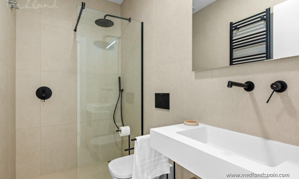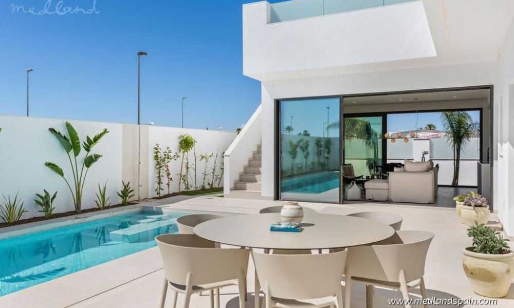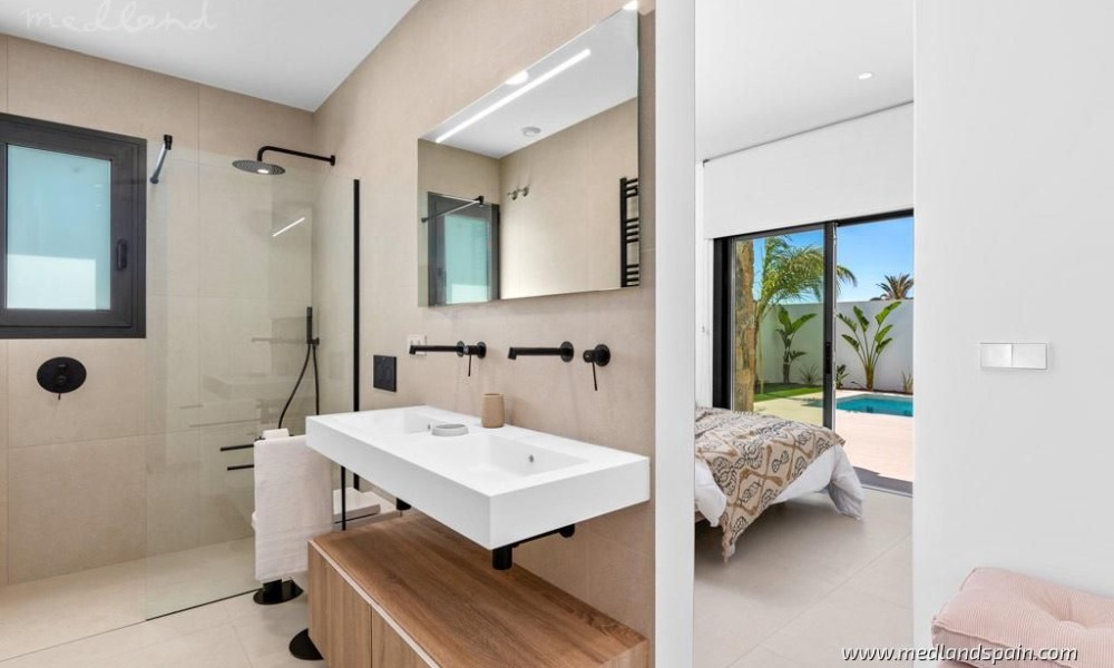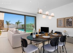 The villas are available in different models: villas with 3 bedrooms, 2 bathrooms and private solarium; or villas with 3 bedrooms, 3 bathrooms, with or without private solarium. All villas have a spacious, open plan living area, with large windows that open onto the terrace and private pool area. The master bedroom, in all models, has a private bathroom and open onto the terrace. The outdoor spaces are ideal for enjoying the Mediterranean outdoor lifestyle, with more than 320 days of sunshine a year.The villas will be built with top quality materials and finishes, and will include ducted A/C, integrated white goods in the kitchen, electric blinds in the bedrooms, complete bathrooms with electric towel rail, indoor and outdoor LED lighting, private pool with pre-installation for a heat pump, and parking on the premises.