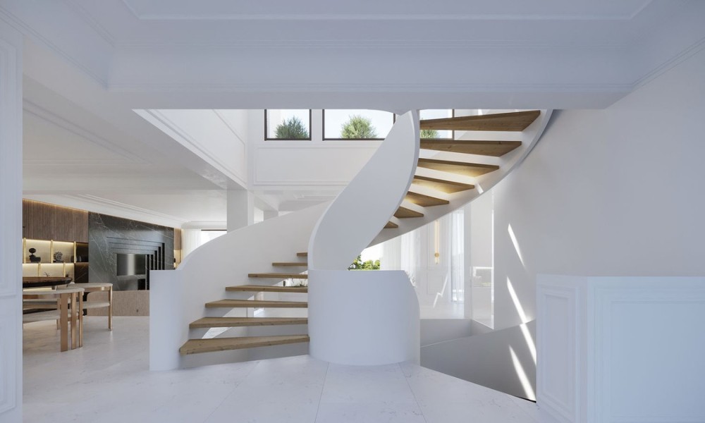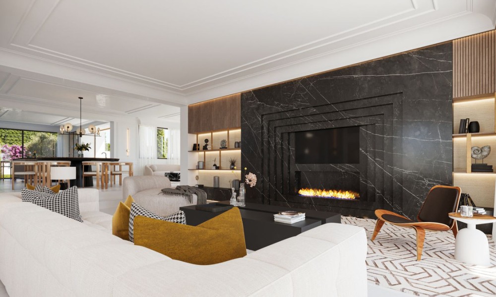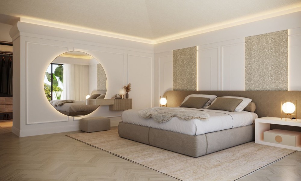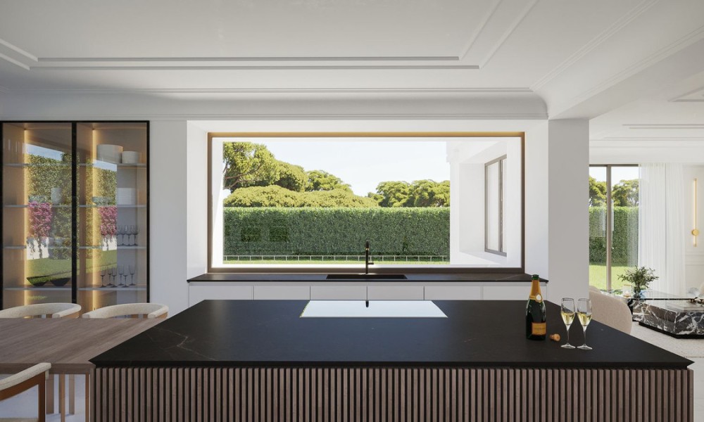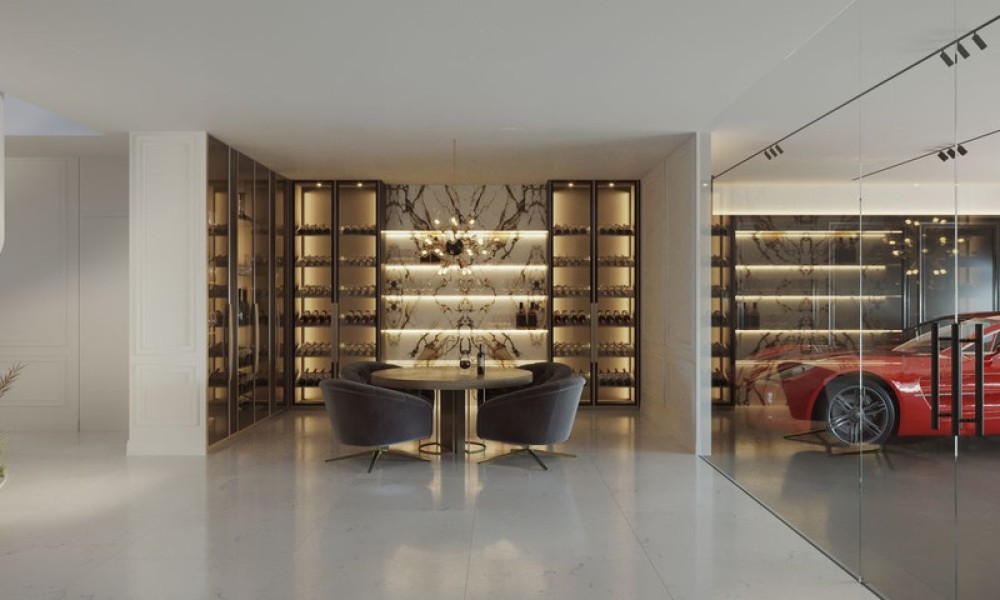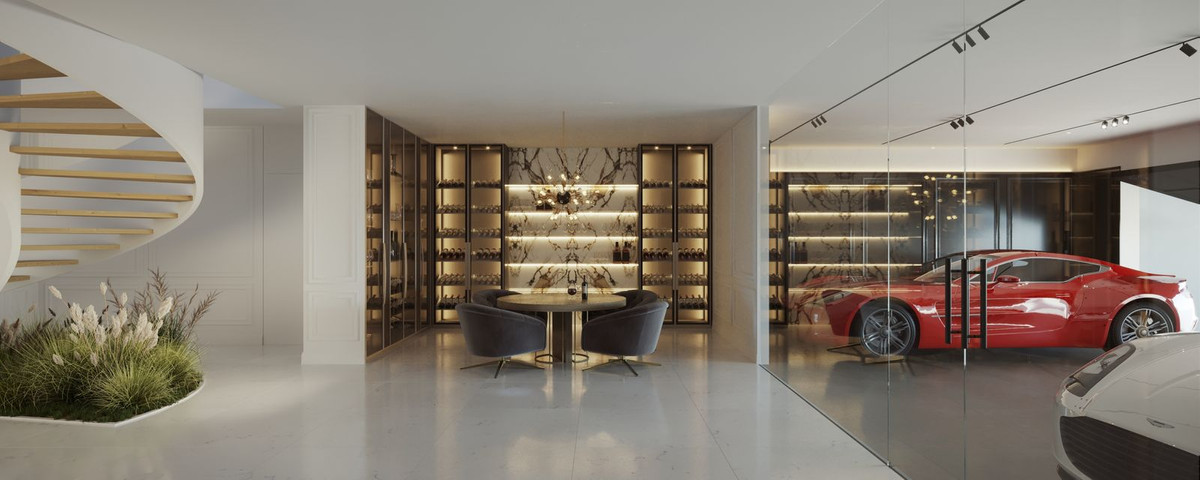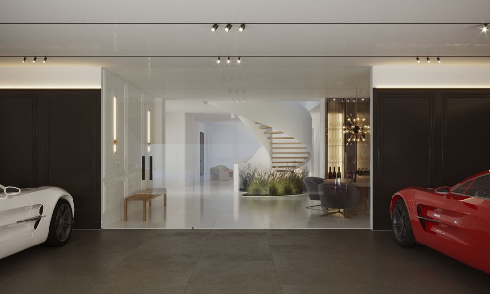 On the first floor you find a guest en-suite bedroom and the luxury master suite that has a walk-in closet, superb bathroom and a private terrace the breath-taking panoramic views to the sea. Using the staircase down to the basement you find an indoor spa, gym, cinema room, play room and a three car garage where you can display your cars. There is also a en-suite bedroom with a private entrance that could be used for guests or staff.