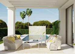 Classic modern five bedroom detached villa with panoramic views over the golf valley. Upon entering the large lobby you find an impressive designed spiral staircase that takes center stage. On this floor you find a bright living dining area and luxurious fully fitted kitchen all that lead out to the fabulous terraces that are perfect for entertaining with a outdoor kitchen and barbeque area, by the swimming pool surrounded by landscaped gardens. On the ground floor you also find two guest en-suite bedrooms and a private office.