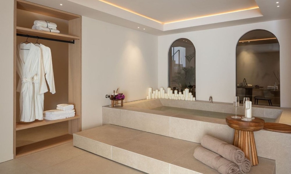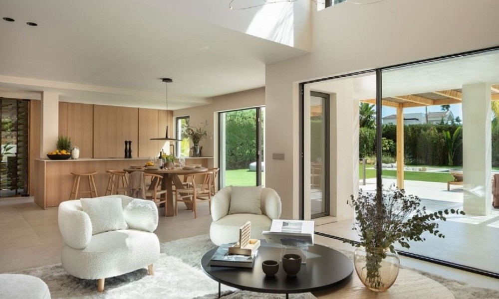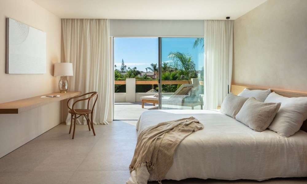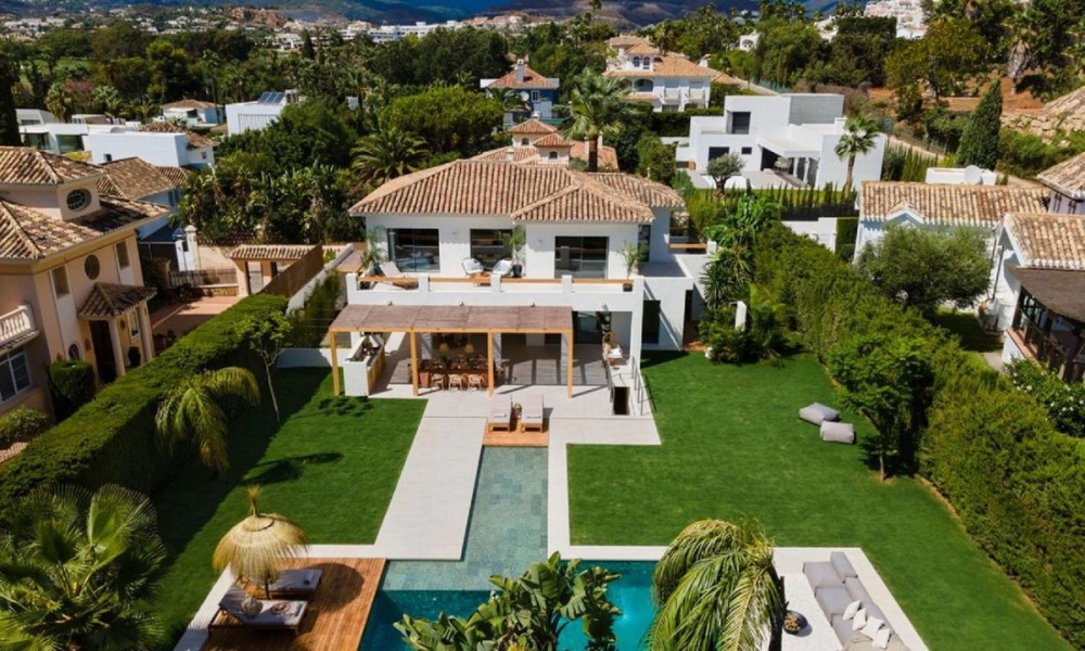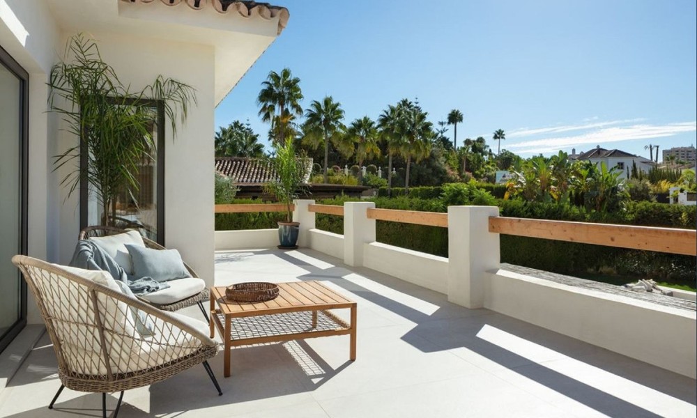 Wonderful five bedroom newly renovated detached villa in Nueva Andalucia. Distributed over three floors, this simply breathtaking property offers generous outdoor living areas. At the entrance level, you have the large lounge, fireplace and floor to ceiling windows with views to the pool, opening to the dining area and the modern open plan fully fitted kitchen with top quality appliances. From the kitchen and living area, you have direct access to the private terrace and landscape gardens. On the top floor, you have the majestic master bedroom suite, with walk in closet, a large spa like bathroom with walk in shower and a bath.