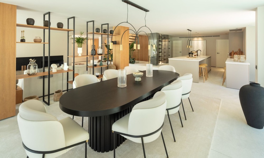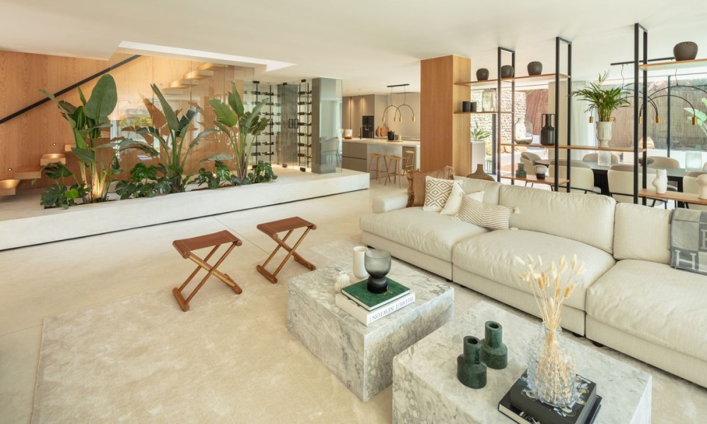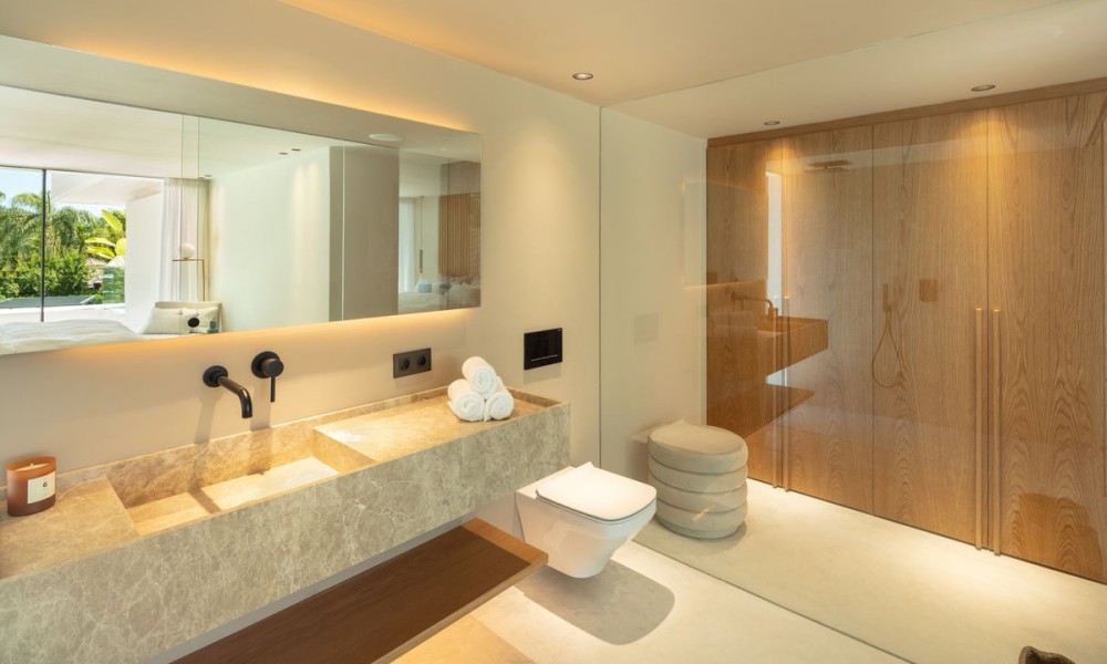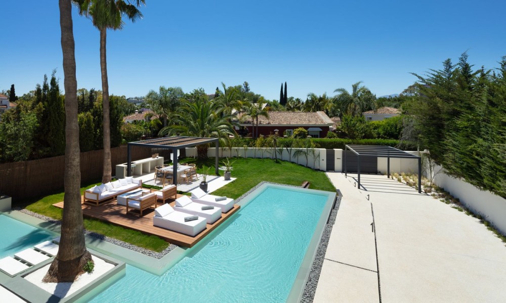 Beautifully fully renovated four bedroom detached villa in Nueva Andalucia with two private swimming pools. This exquisite is surrounded by prestigious golf courses, international schools whilst just being a short distance to all amenities and the beach. The villa has been fully renovated to high standards with a fully equipped luxury kitchen, bright contemporary open plan lounge with a fireplace, dining room with access to the beautiful gardens, amazing terraces, outdoor kitchen and dining area with two swimming pools, four large en-suite bedrooms and a guest toilet complete this property.