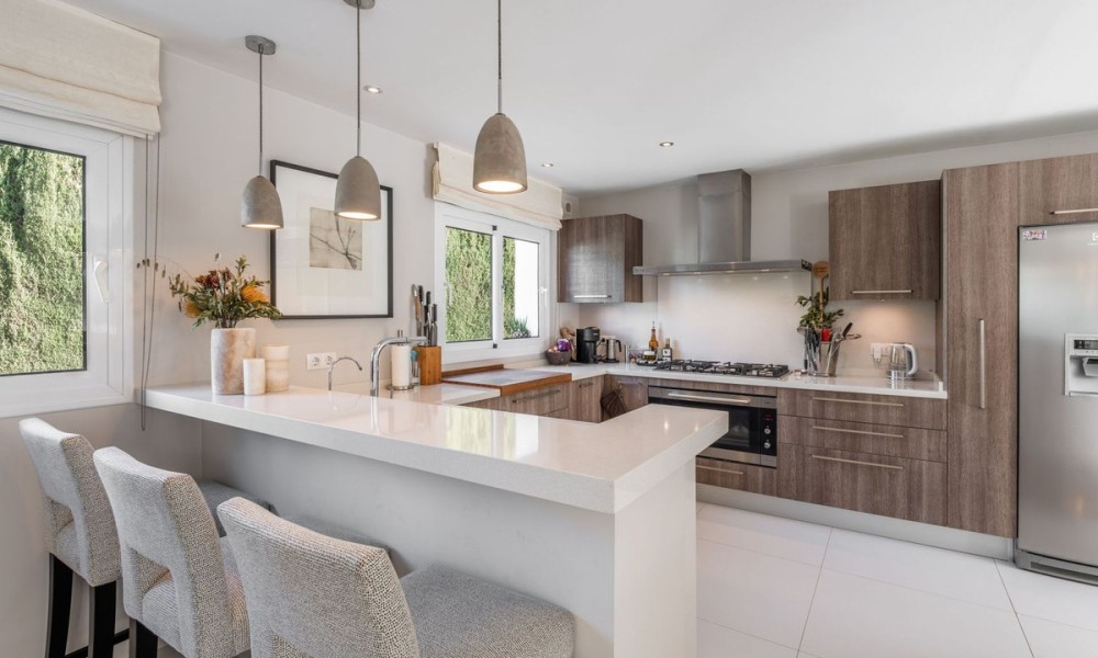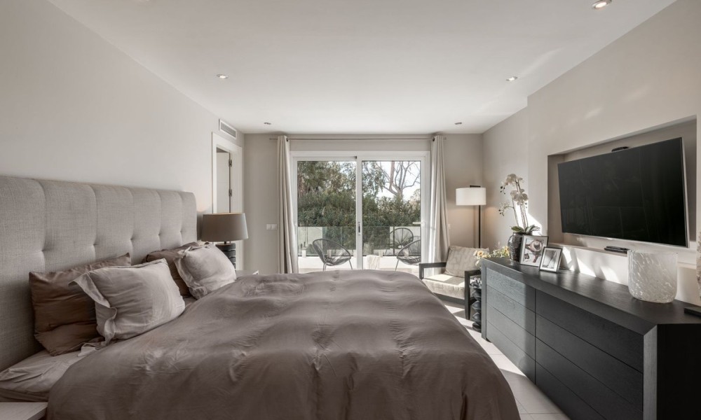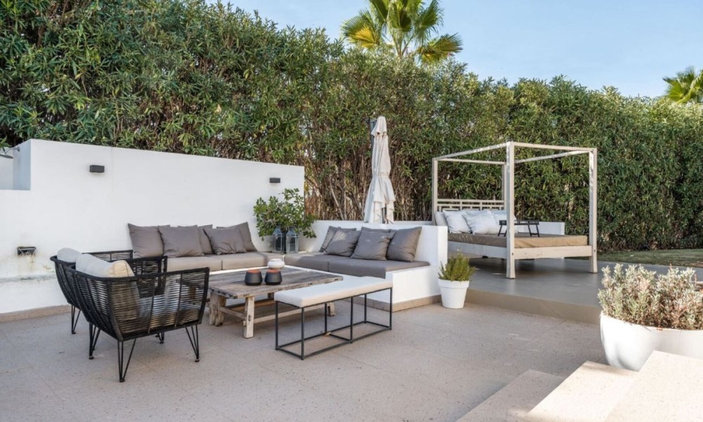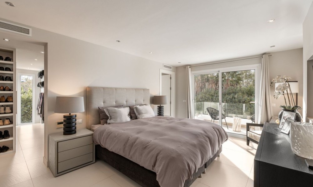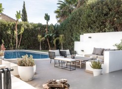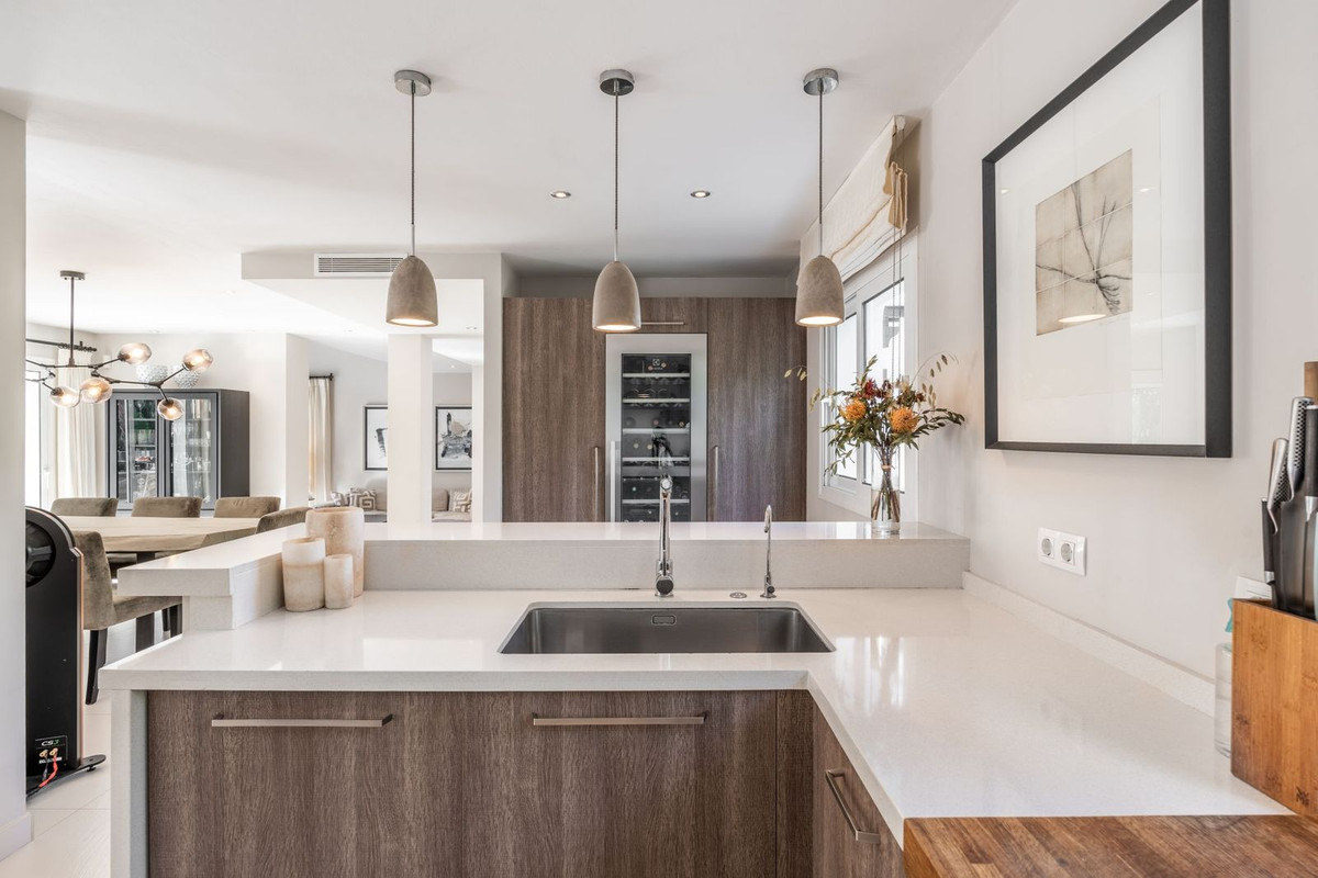 Stunning detached residence situated in one of Marbella’s most esteemed locations, this property epitomizes the essence of refined living.The outdoor space is a haven of sophistication, featuring a fully equipped kitchen with a gas pizza oven, a 4-burner gas grill, a wood/charcoal Maria style BBQ/Grill, fridges, and a wine cooler. The outdoor kitchen lounge, sun deck, pool lounge with a water feature, sun bed lounge, and dining terrace for 12 offer an unparalleled blend of relaxation and entertainment. The 11m x 5.5m pool and carefully orchestrated garden lighting enhance the property’s elegance.The master bedroom suite is a sanctuary of luxury, complete with a private balcony, a walk-in closet, and a bespoke ensuite featuring an oversized shower, bespoke stone bathtub, and an auto toilet. Three additional ensuite bedrooms, each boasting private balconies, fully fitted wardrobes, and automated toilets, cater to both comfort and convenience.The heart of the home lies in its modern amenities.