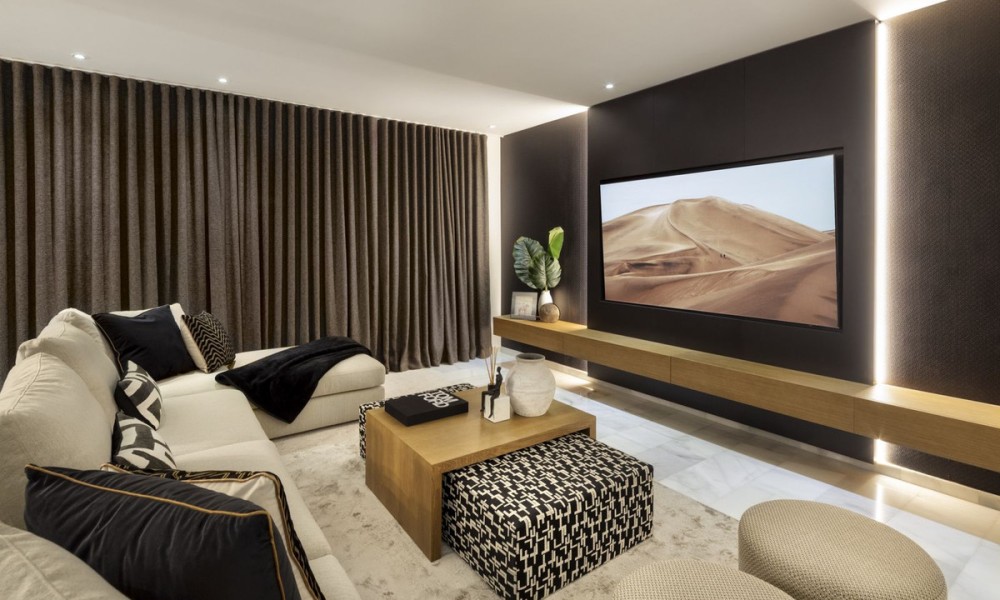 The kitchen, a haven for culinary enthusiasts, not only boasts grandeur in design but also offers practicality with its abundance of storage space, catering to the needs of both functionality and aesthetics.The unique architectural layout of Alhambra Palace allows for the perfect balance of privacy and connectivity. En-suite guest bedrooms offer comfort and style, with direct access to the captivating central patio. The master bedroom, situated on the ground level, is a sanctuary of luxury, featuring impeccable interior design, a sumptuous private bathroom and a spacious walk-in closet.Descending to the lower level, residents are treated to a wealth of amenities. A fully equipped outdoor gym invites health and wellness enthusiasts, while a custom traditional bodega, entertainment room and cinema room cater to leisure and social gatherings .The crowning glory of is the expansive terrace on the uppermost level, offering panoramic views of the surrounding area and the majestic La Concha Mountain. This elevated vantage point becomes a private retreat, providing a stunning backdrop for social gatherings or moments of quiet reflection.Beyond its architectural splendour, the villa’s location in the Golf Valley ensures unparalleled convenience. Quick access to Nueva Andalucia’s amenities, world-class golf courses, the famed Puerto Banus and the luxurious Marbella Golden Mile make this property a residence of distinction, where every detail is a testament to an elevated lifestyle.