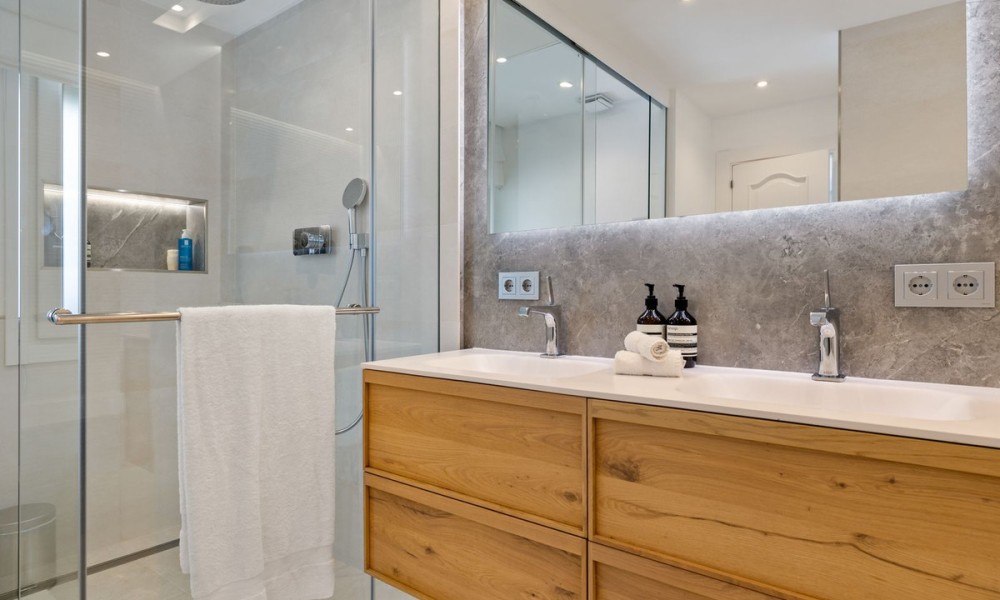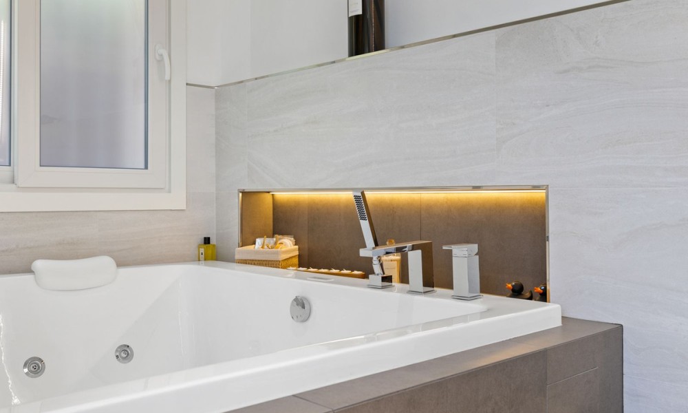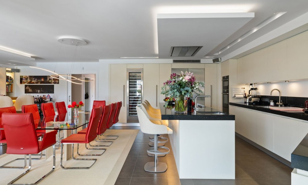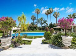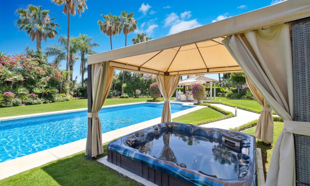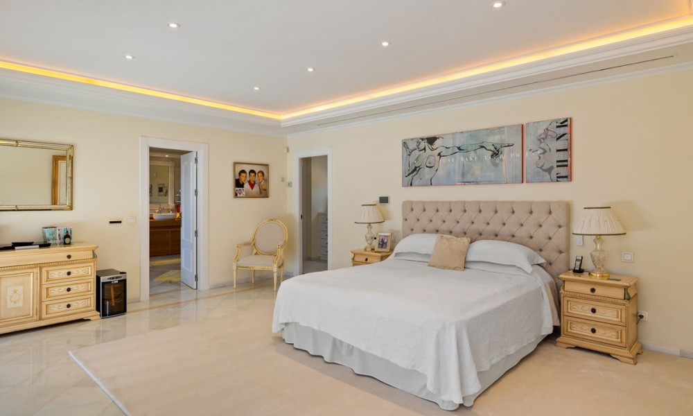 Fabulous Luxury Villa with La Concha Views | Nueva Andalucía, MarbellaA stunning villa that perfectly blends contemporary design with timeless Andalusian charm. Recently renovated and situated in one of Nueva Andalucía’s most sought-after residential areas, this south-facing residence enjoys exceptional privacy, tranquillity, and magnificent views of La Concha mountain.The main level welcomes you with a grand entrance hall, soaring ceilings, and an elegant living area with a feature fireplace. The open-plan dining space flows into a fully fitted kitchen equipped with premium Siemens and Neff appliances, complemented by an impressive entertainment bar. This floor also hosts four en-suite guest bedrooms, an office, a guest toilet, and a laundry area. Expansive terraces lead directly to the manicured gardens and a beautiful pool area designed for relaxation and entertaining.
