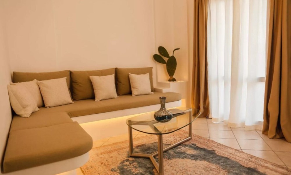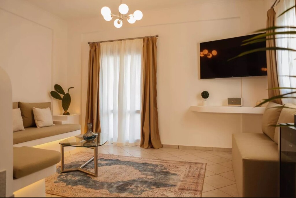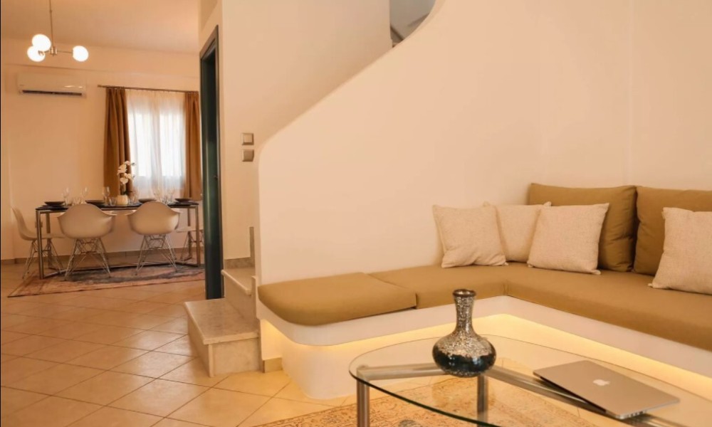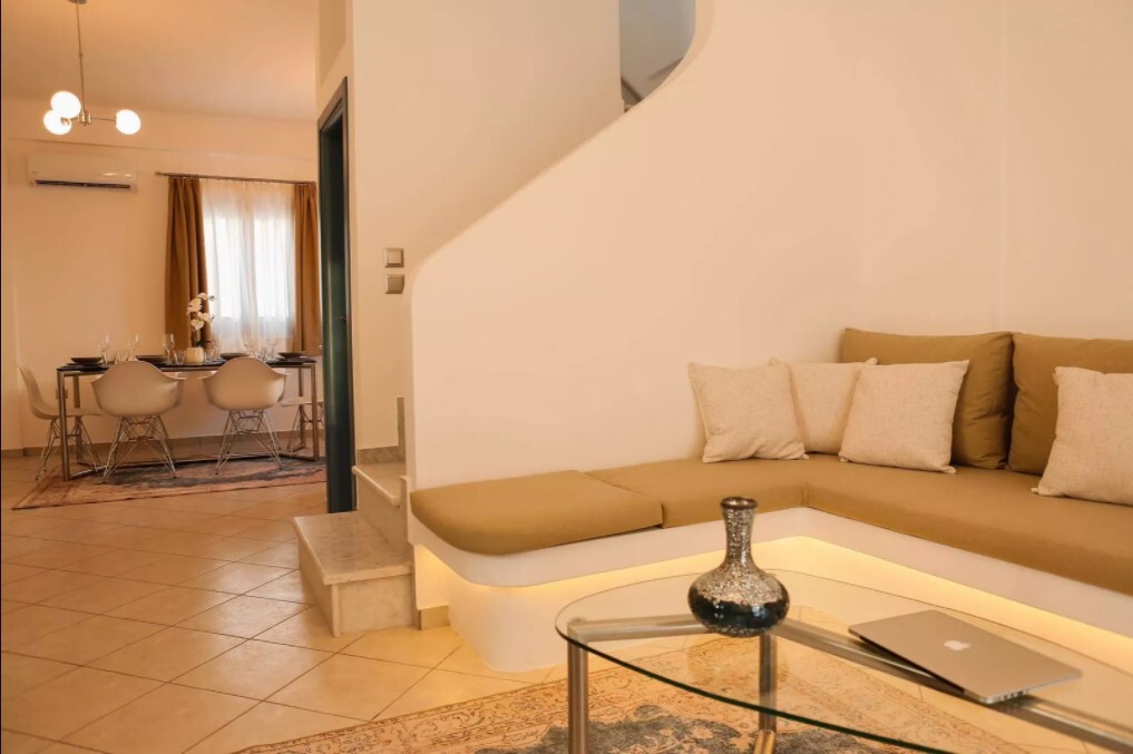 For sale 4-storey villa of 150 sq.meters in Santorini. Semi-basement consists of one bedroom, living room with kitchen, one bathroom, one storeroom.