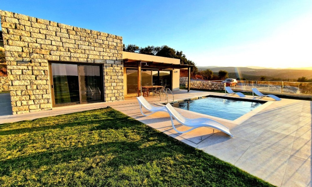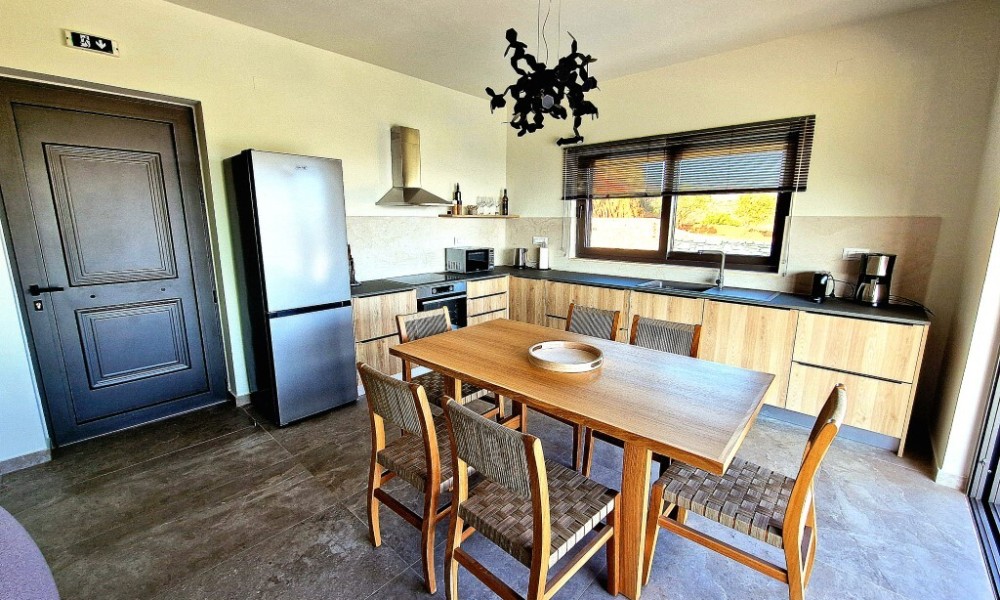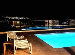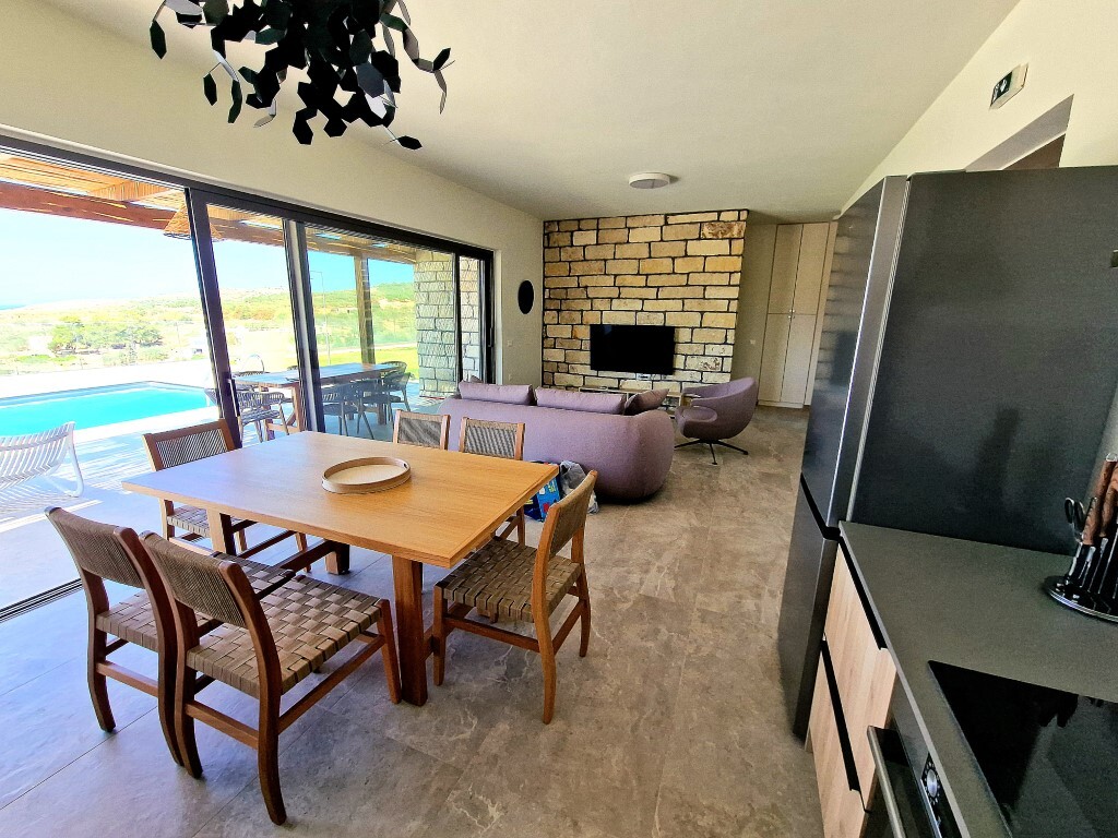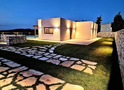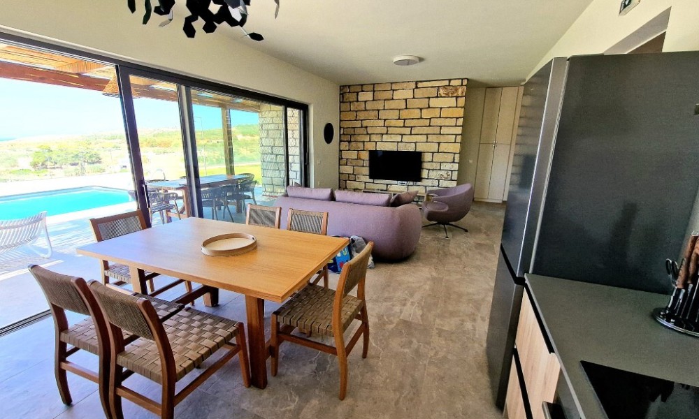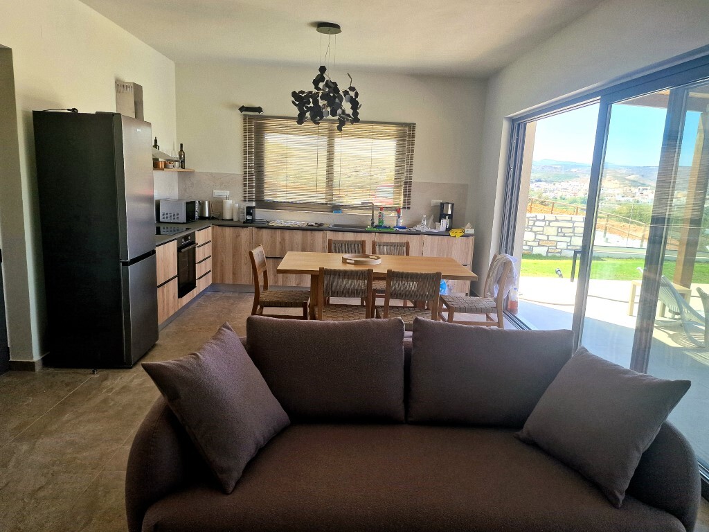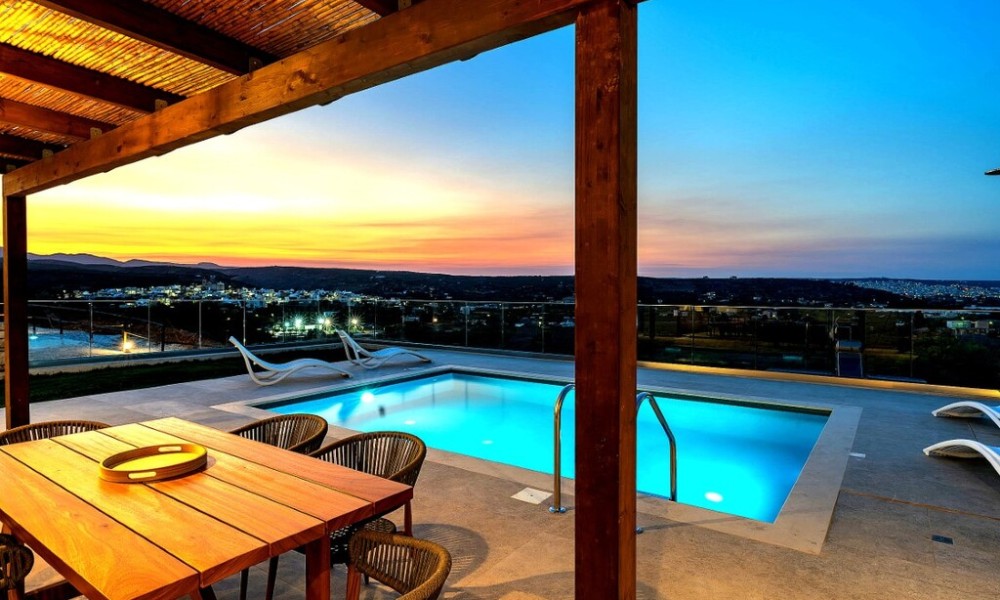 For sale 1-storey villa of 95 sq.meters in Crete. Villa consists of 2 bedrooms, living room with kitchen, one dining room, 2 shower WC. A magnificent view of the city, the sea, the mountain, the forest opens up from the windows. There are: solar panels for water heating, air conditioning, heating. The owners will be leaving the furniture with the sale. There is an alarm system installed. Extras included with the property: parking space, garden. The property boasts a swimming pool of private use.