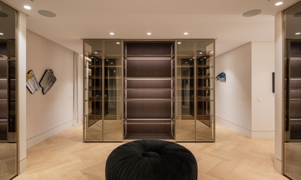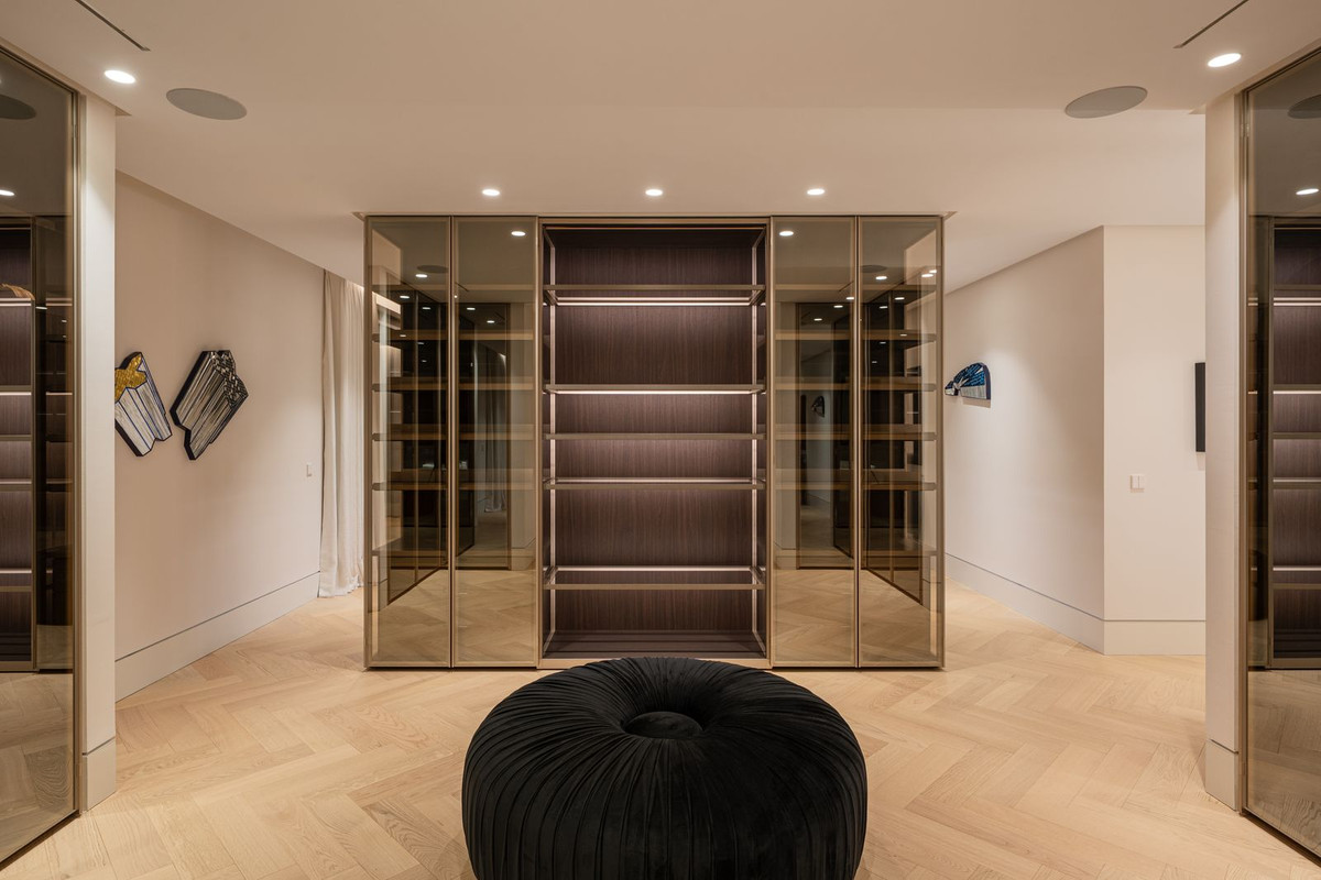 A dedicated home office provides a quiet workspace within the residence.The lower level has been designed as a private leisure retreat, featuring a bespoke bar and entertainment lounge, a fully equipped gym, an indoor pool and a Turkish bath, delivering a true spa experience at home. Outdoors, a private swimming pool, manicured gardens and multiple lounging and dining areas create inviting spaces for relaxation throughout the year. An impressive solarium with outdoor kitchenette offers panoramic sea views and is perfectly suited for sunset gatherings.The property benefits from a private garage with space for two vehicles, generous driveway access and landscaped entrance areas that reflect the home’s understated elegance. Situated within a prestigious and discreet residential community, it offers peace, privacy and proximity in equal measure.From this elevated position on the Golden Mile, residents enjoy quick access to Puente Romano and Marbella Club, fine dining such as Nobu and Bibo Dani García, luxury boutiques, beach clubs and the promenade connecting Marbella town to Puerto Banús. International schools, golf courses and hiking trails in the Sierra Blanca foothills are all within easy reach, making this a residence that perfectly blends five-star resort living with everyday convenience.