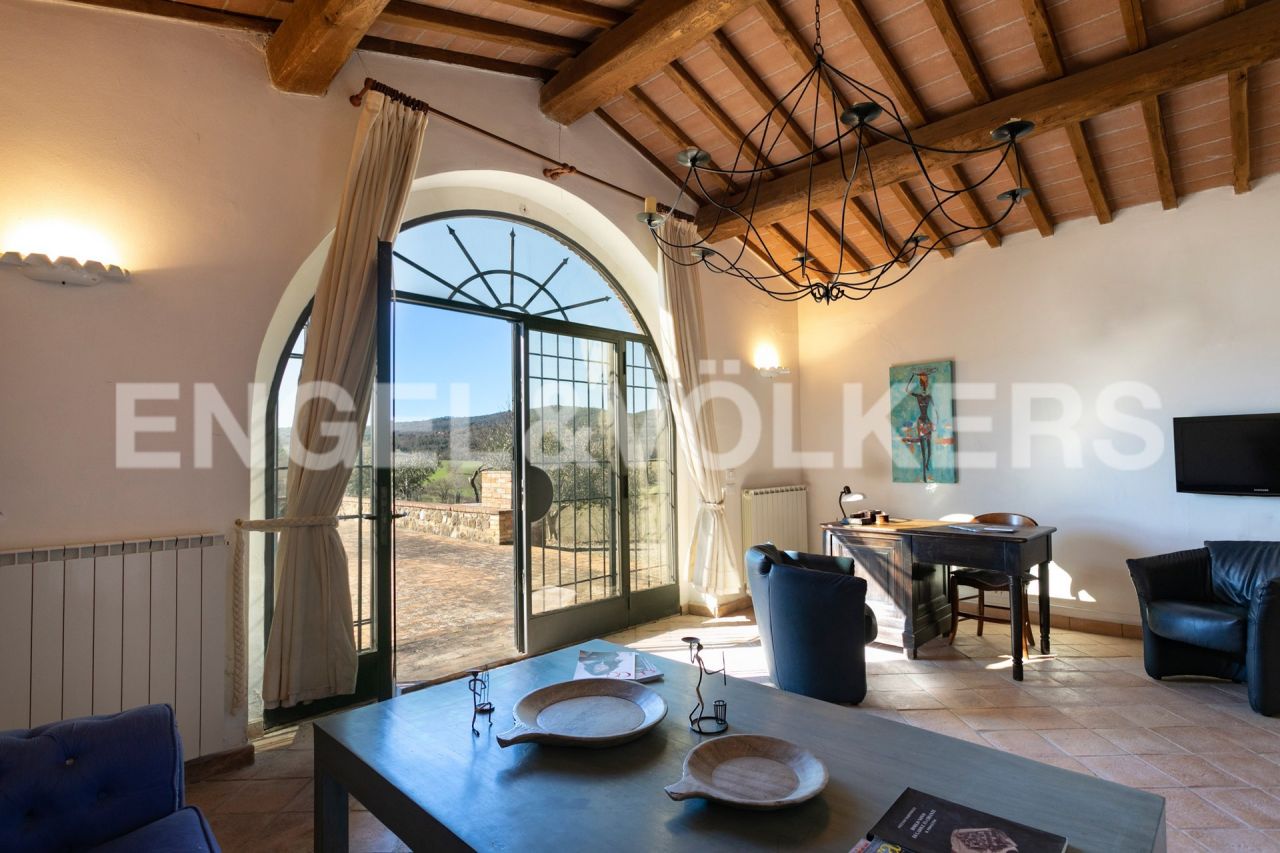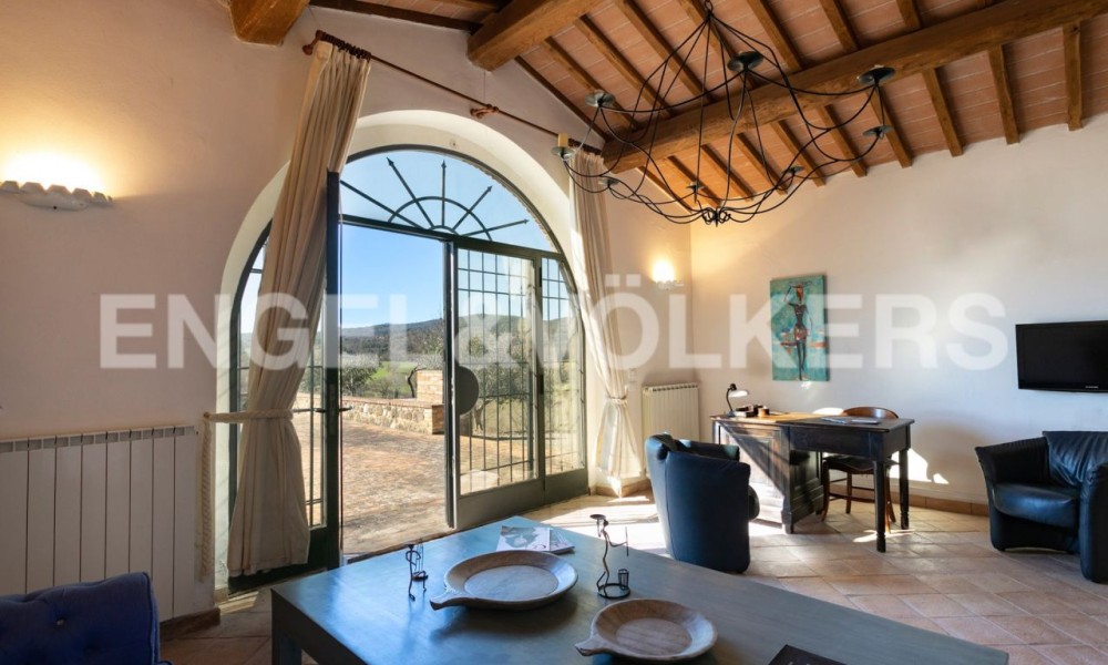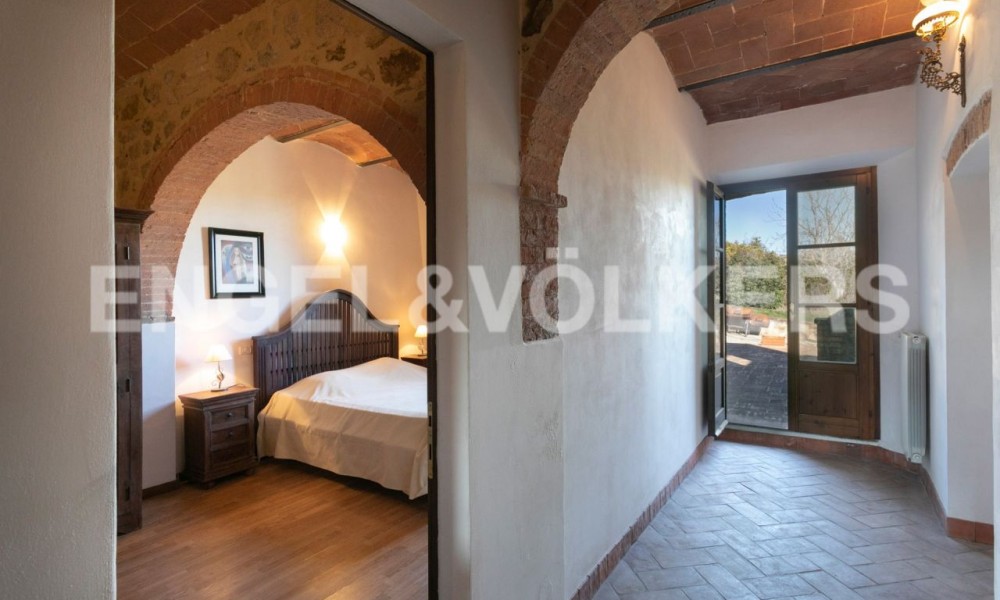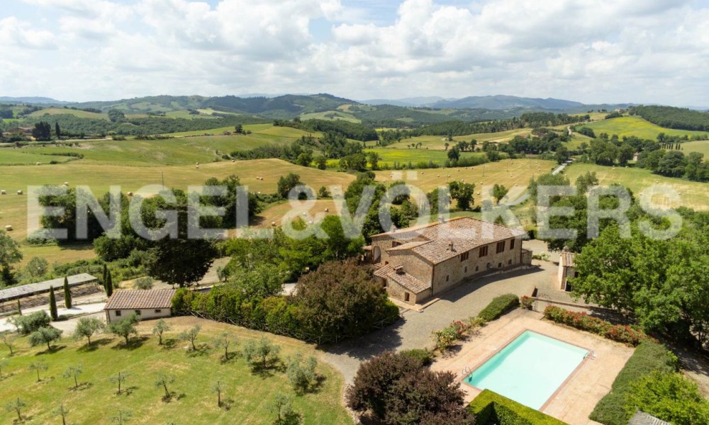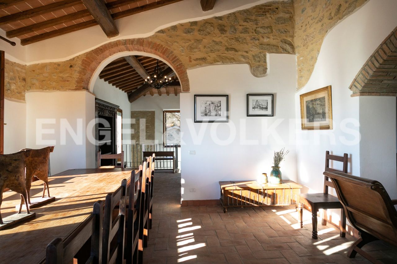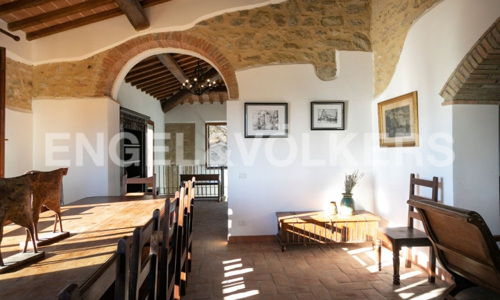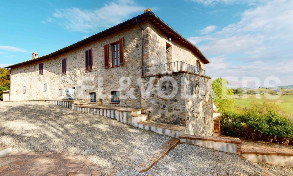 TOURIST ACCOMMODATION TYPICAL TUSCAN FARMHOUSES WITH SWIMMING POOL – Rustic renovated farmhouses consisting of a main farmhouse, two outbuildings and a garage/warehouse for agricultural equipment. An asphalted road leads to the entrance gate of the property, located just 3 km from the historic town of Casole d’Elsa where you can find all the main services. The characteristic Tuscan stone houses have been renovated keeping the ancient charm in the materials such as terracotta floors and wooden beams and a beautiful cellar with vaulted ceiling. The main feature of this property is the panoramic and privileged position, which offers a beautiful view of the typical Tuscan countryside and the characteristic village of Casole D’Elsa. The main building is divided over three floors with on each floor a comfortable apartment, including in total 10 bedrooms, 7 bathrooms and a service bathroom, a large living room, a dining room, a spacious kitchen with fireplace and a rustic wood-burning oven.
