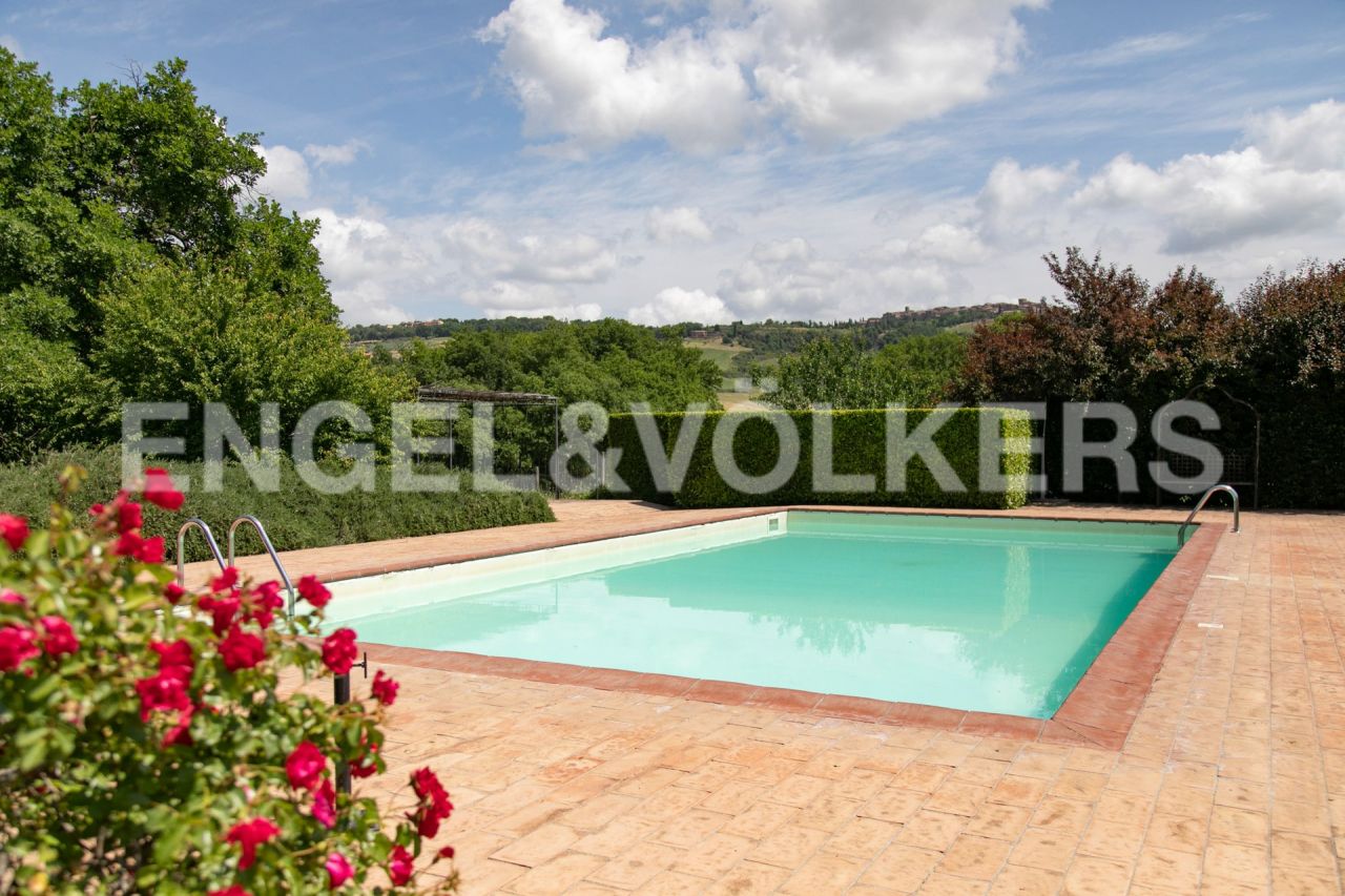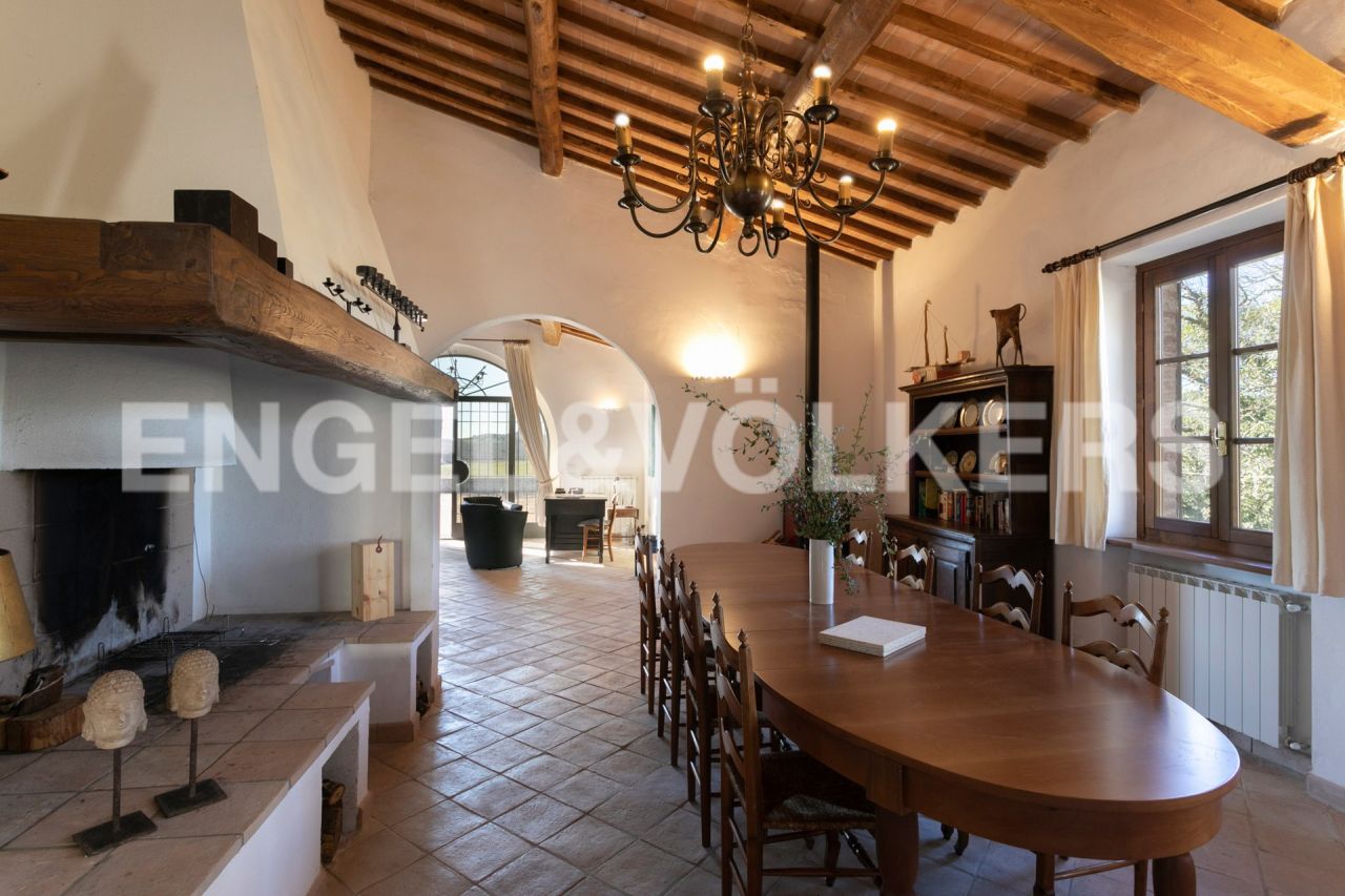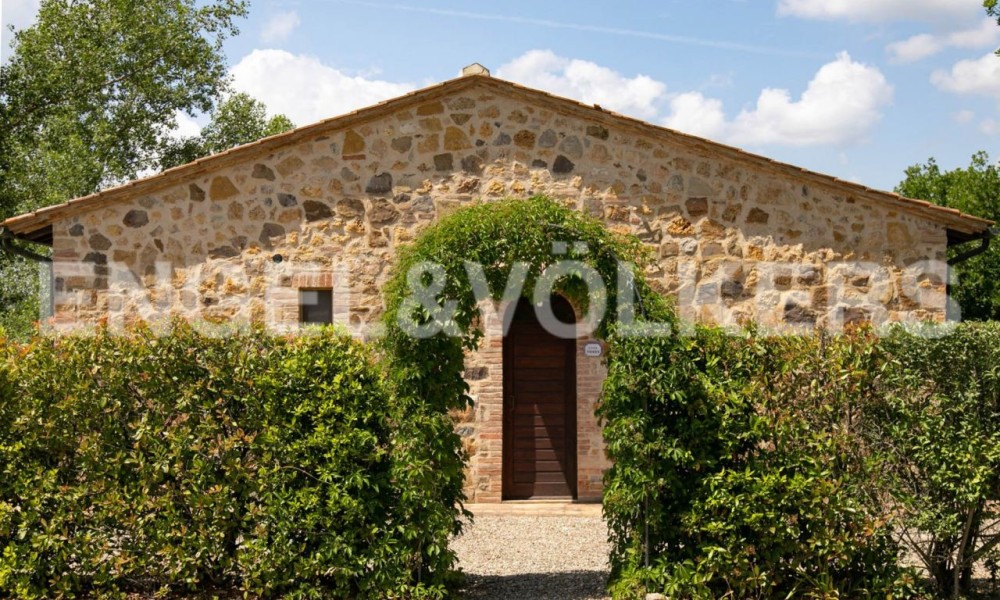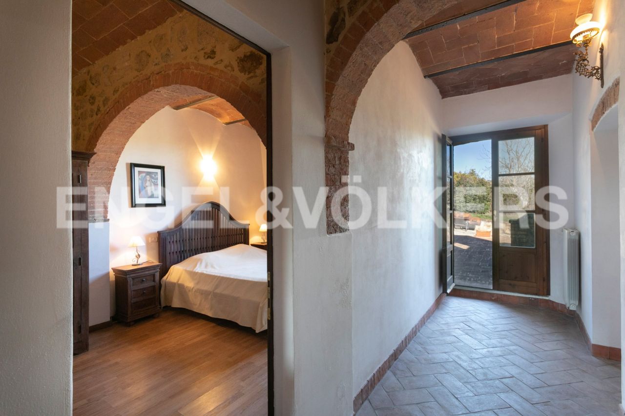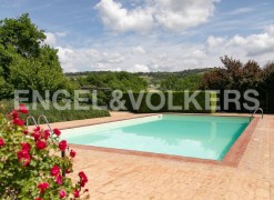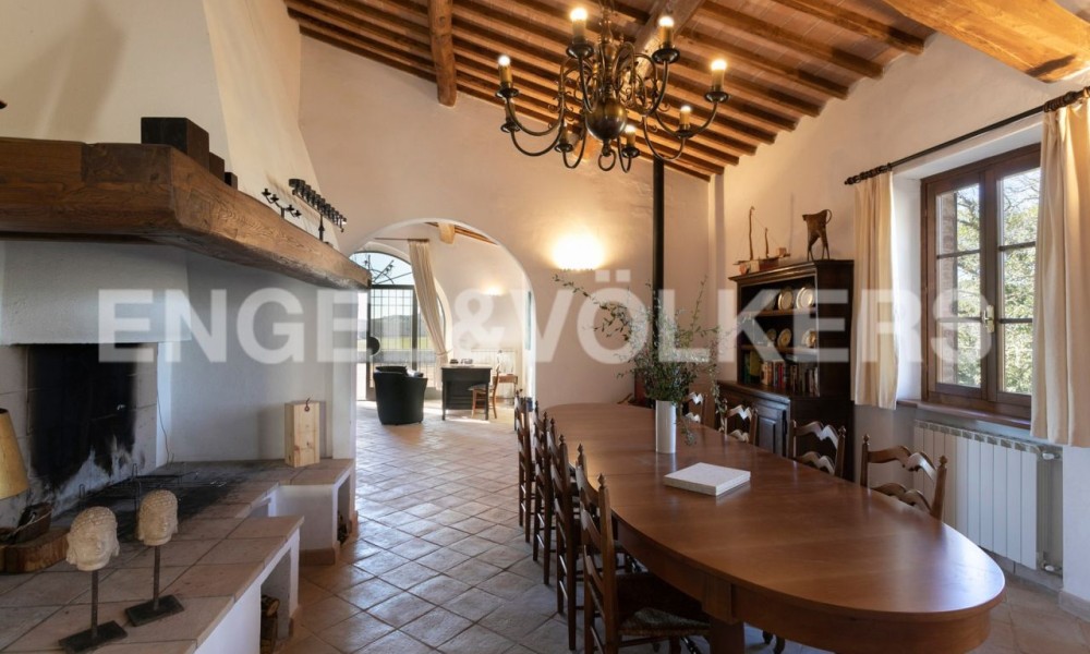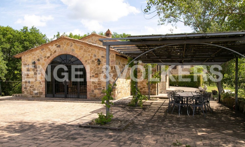 TOURIST ACCOMMODATION TYPICAL TUSCAN FARMHOUSES WITH SWIMMING POOL – Rustic renovated farmhouses consisting of a main farmhouse, two outbuildings and a garage/warehouse for agricultural equipment. An asphalted road leads to the entrance gate of the property, located just 3 km from the historic town of Casole d’Elsa where you can find all the main services. The characteristic Tuscan stone houses have been renovated keeping the ancient charm in the materials such as terracotta floors and wooden beams and a beautiful cellar with vaulted ceiling. The main feature of this property is the panoramic and privileged position, which offers a beautiful view of the typical Tuscan countryside and the characteristic village of Casole D’Elsa. The main building is divided over three floors with on each floor a comfortable apartment, including in total 10 bedrooms, 7 bathrooms and a service bathroom, a large living room, a dining room, a spacious kitchen with fireplace and a rustic wood-burning oven.