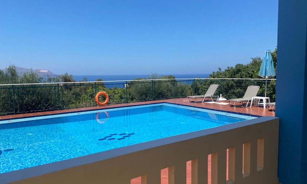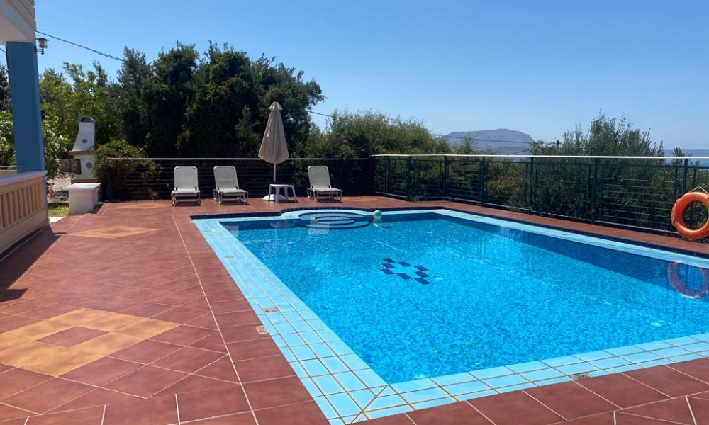 1st floor consists of 2 bedrooms, one bathroom. A magnificent view of the sea, the mountain, the forest opens up from the windows. There are: solar panels for water heating, a fireplace, air conditioning, heating, a barbecue area. The owners will be leaving the furniture with the sale. Extras included with the property: parking space, garden. The property boasts a swimming pool of private use.