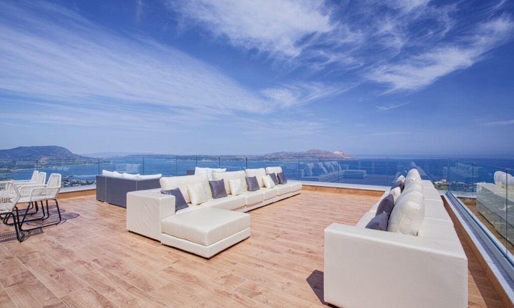 The property offers a roof garden. A magnificent view of the city, the sea, the mountain, the forest opens up from the windows. There are: solar panels for water heating, air conditioning, heating. The owners will be leaving the furniture with the sale. There is an alarm system installed. Extras included with the property: parking space, garden. The property boasts a swimming pool of private use.