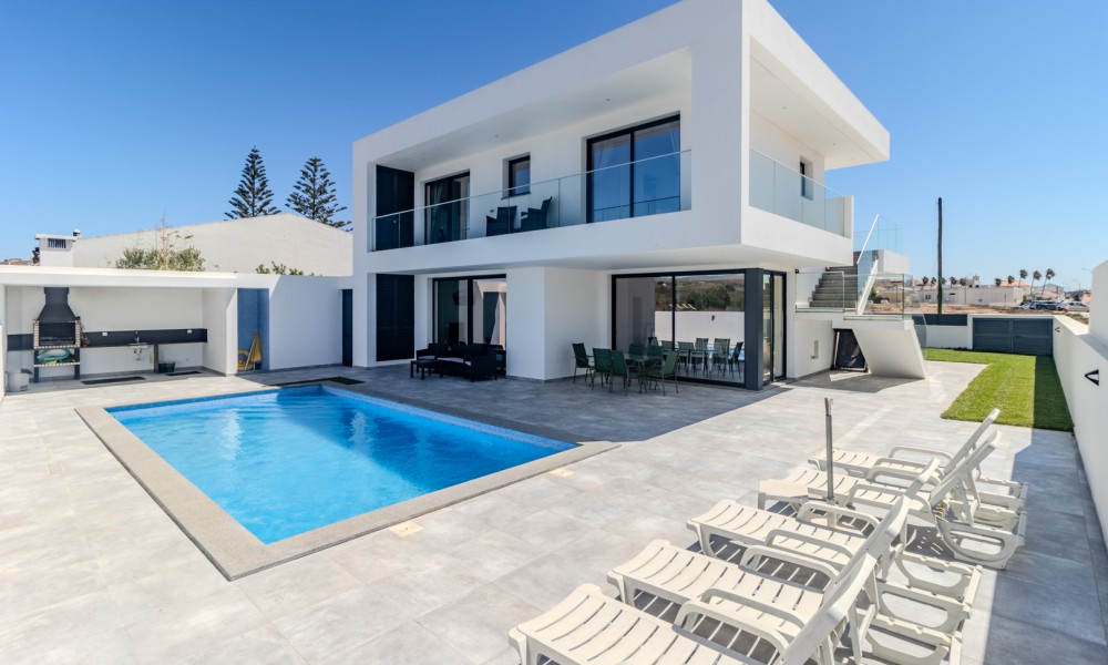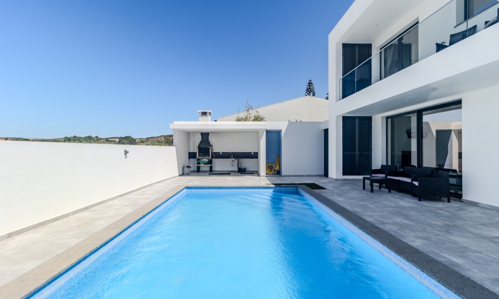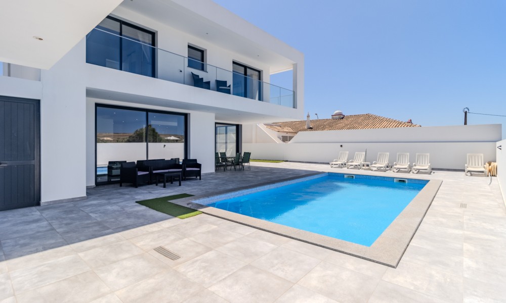 There is also an outdoor shower and a side entrance. The area behind the villa cannot be built on and therefore offers unobstructed views of the countryside.The property has various balconies and terraces as well as a large lawn area under which there is a rainwater storage tank which is used to water the lawn in the summer, saving a huge amount of water.This stunning property has to be seen to be appreciated. With its pool and countryside views, it is the perfect retreat for those looking to combine modern comforts with the unspoiled beauty of the rural Algarve, promising unforgettable moments in one of the most charming areas of southern Portugal.Situated in a tranquil and idyllic area, this villa offers a retreat away from the hustle and bustle of city life, yet is only a stone’s throw away from all major amenities. From stunning beaches to scenic hiking trails, Vila do Bispo is the ideal location for those seeking a peaceful life in touch with nature.