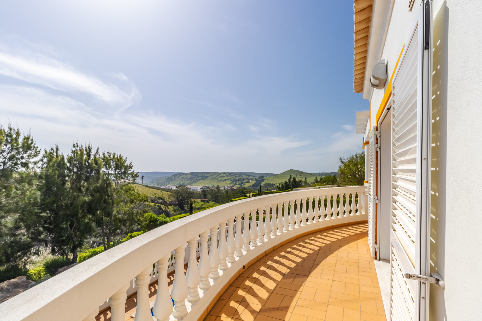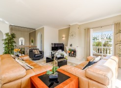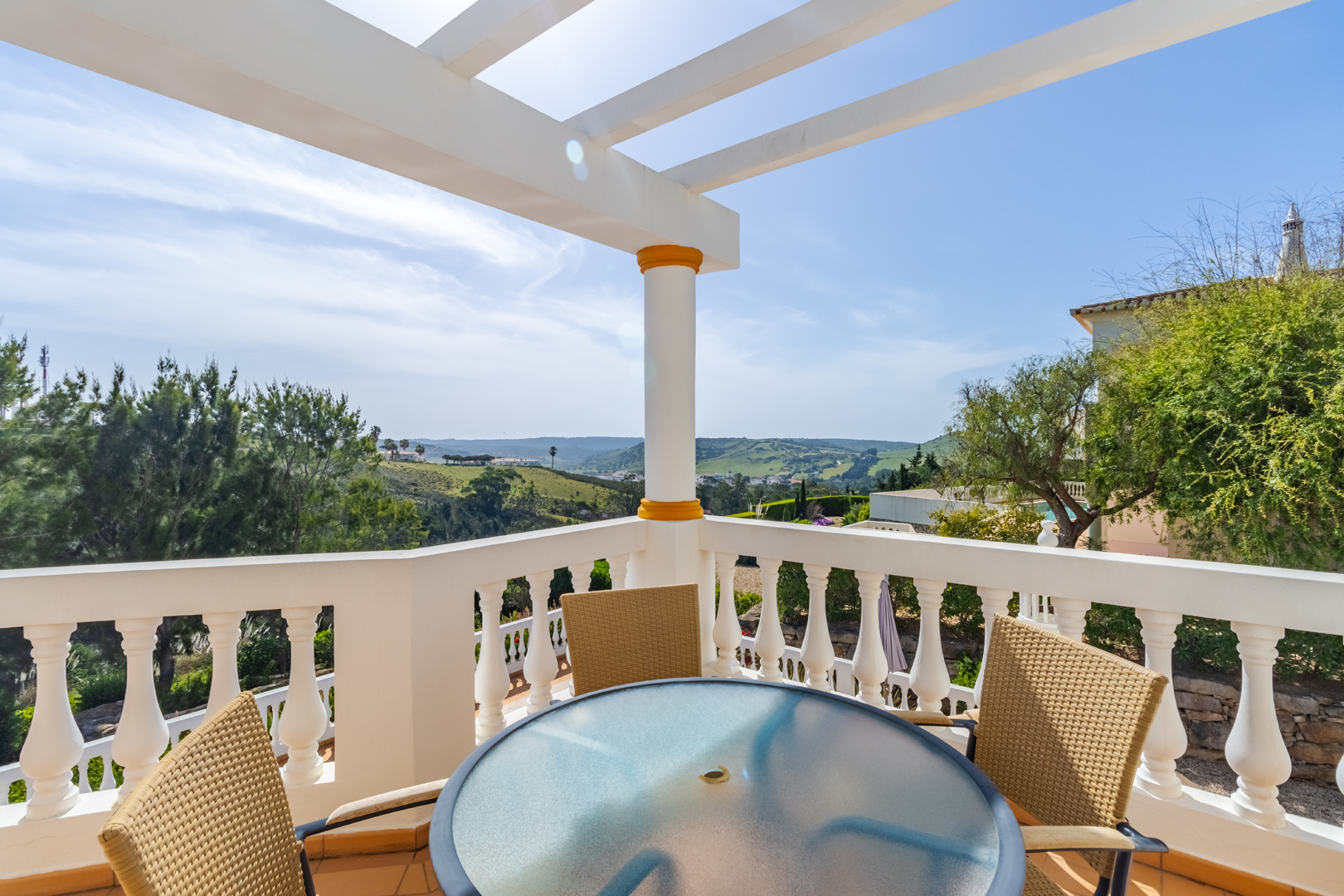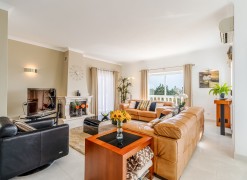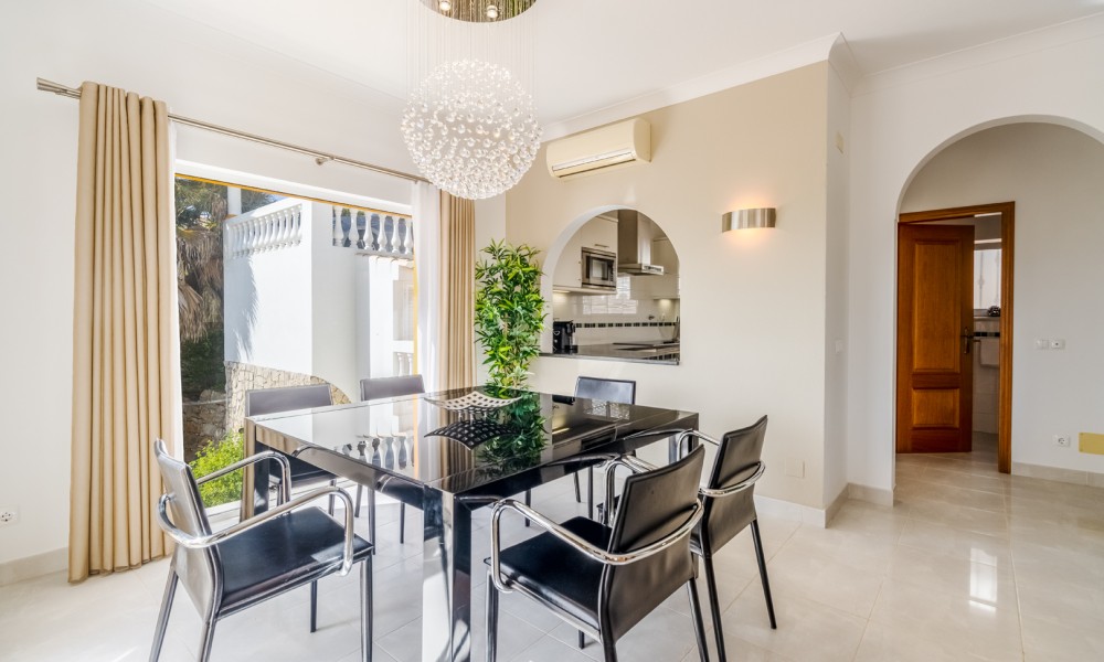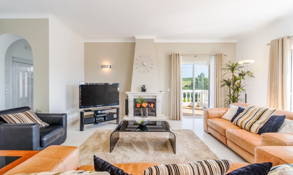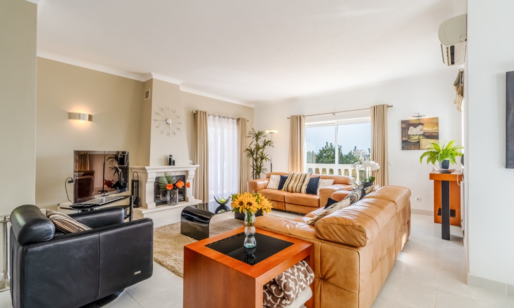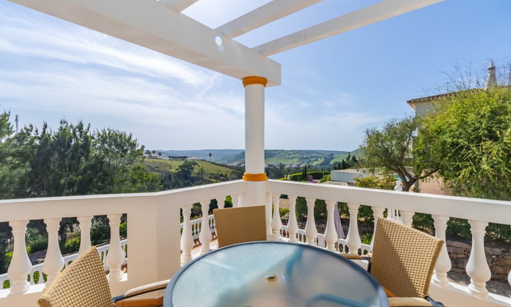 This stunning 3 bedroom villa is situated in a fabulous position on Parque da Floresta golf course with great views over the countryside and out to sea.The hallway leads you into a stylish open plan living and dining room with a huge wrap around terrace which makes the most of those panoramic views.The fully equipped kitchen is next to the dining area with an open archway so you can chat to your guests whilst preparing meals. There is also a guest toilet on this level.Downstairs there are 3 spacious double bedrooms, all en-suite and with fitted wardrobes.