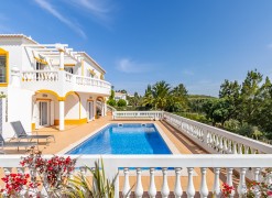 Each bedroom leads out to the inviting pool terrace which is also accessible from the upper level.The spacious 1,100m2 plot has been beautifully landscaped with mature trees and shrubs – the ideal setting for lounging beside the heated swimming pool. Additionally, there is a BBQ area, and lots of space for dining by the pool, and an outdoor shower for cooling off.The villa would be an ideal home; holiday retreat, or lucrative rental investment. Viewing is highly recommended to appreciate its potential.
