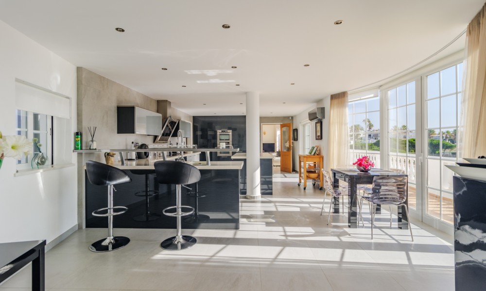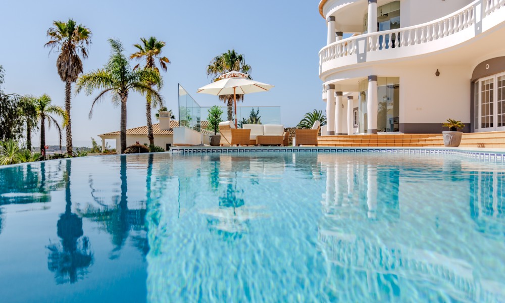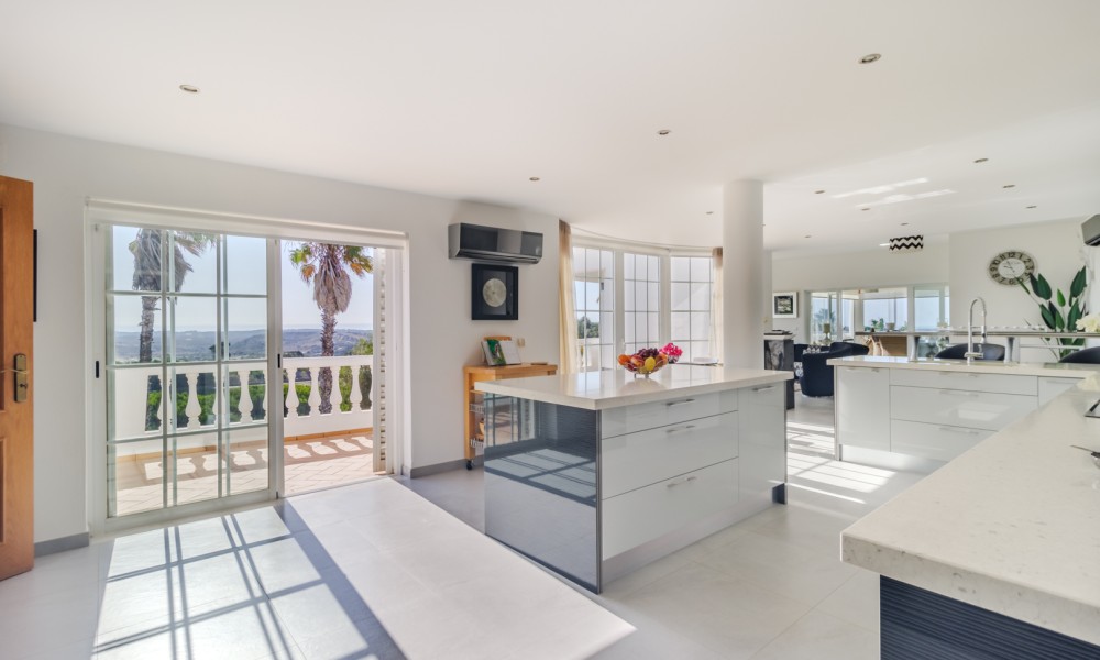 On the lower level, which can be accessed via a lift or stairs, there are a further 3 double bedrooms, each with fitted wardrobes and en-suite bathrooms. All have direct access to the sun terrace and swimming pool. There is also another lounge area, a beautifully designed office, a pool room, and a steam room and relaxation area.The property also includes a garage, and various outdoor spaces designed for relaxation, including a Mediterranean garden and an infinity pool. High-end features such as double glazing, underfloor heating, and a state-of-the-art security system ensure a lifestyle of comfort and security.If you are looking for a stunning home with all the modern amenities, set in a peaceful location with breath-taking views, this could be the perfect villa for you!