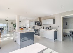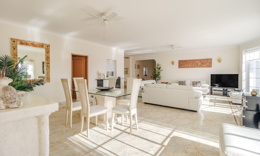 This stunning 4 bedroom villa offers luxurious living with breath-taking views of the surrounding countryside. Sitting on a large plot in a prime frontline position on Parque da Floresta golf resort, this beautifully designed 4-bedroom contemporary property spans across two spacious floors. The upper level has an open-plan design, with a huge living dining area; a modern open high-spec kitchen and utility room, a guest toilet, and an informal lounge. One of the best features of this level is the fantastic modern indoor/outdoor dining room; which has a summer kitchen for ease when entertaining, and sliding windows opening to a large terrace with panoramic views of the golf course and surrounding countryside. This is the perfect place for hosting meals with family and friends.This level also features a spacious master suite with an en-suite bathroom, and its position on the upper floor makes the most of the stunning views.
